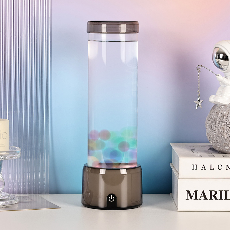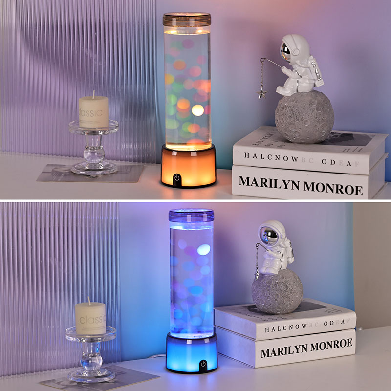 Xehetasunei arreta handiz egina, lanpara honek benetako akuario baten itxura imitatzen du bere gorputz zilindriko gardenez betetako likido argiz eta barnean dotorez flotatzen diren medusa irudi argiz beteta. Barneko LED sistemaren distira leunak medusaren mugimendua hobetzen du, eta ur sakonetan noraezean dabiltzan izaki bioluminiszenteak dirudien bokeh-efektu liluragarria sortzen du. Gau-mahaian, mahaian, apal batean edo egongelako mahaian jarrita, lanpara honek dotorezia eta harrigarritasun ukitua ematen dio edozein inguruneri.