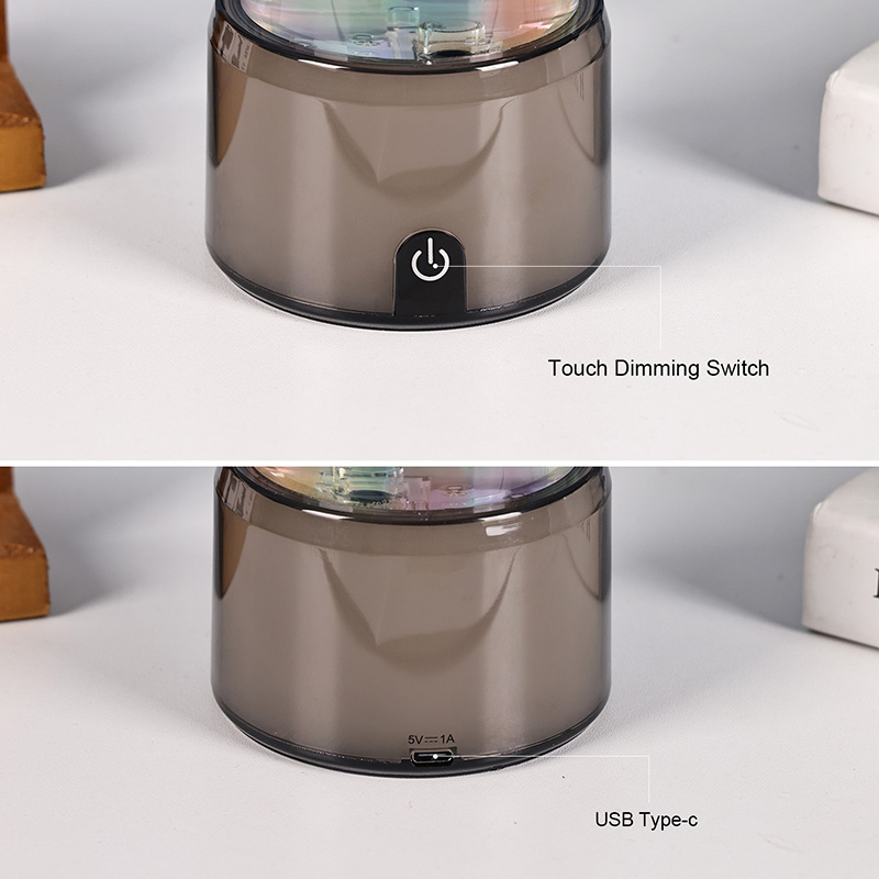 Erosotasun modernorako diseinatuta, lanpara honek USB bidez DC kargatzeko onartzen du, USB kable estandar bat (barnekoa) edo hormako egokitzaile bateragarri bat erabiliz elikatzeko aukera emanez. Ez da bateriarik behar; konektatu besterik ez duzu kargatzeko eta gozatu orduak etenik gabeko erabileraz. Bateriak kargagarri integratuak iraupen luzeko errendimendua bermatzen du, gaueko argi gisa edo giroko dekorazio gisa erabiltzeko ezin hobea da etengabeko konexiorik behar izan gabe.