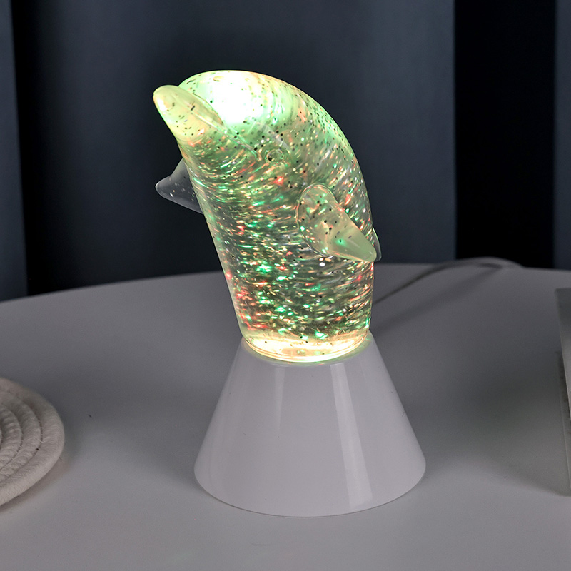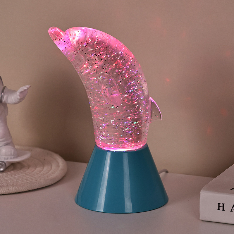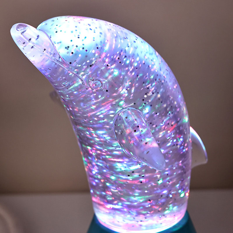 Dolphin Kid Gift Glitter RGB Nigh Light izurde polit baten forman diseinatuta dago, lerro leunekin eta xehetasun bikainekin izurdeen jarrera arina ezin hobeto berreskuratuz. Izurdeen oskol gardenaren barruan, lentejuela forman Mugimendu irregularrak koloreak ederki isla ditzake, giro baketsu eta misteriotsua sortuz. Lanpara honi begiratzen duzun bakoitzean, ozeano sakon batean zaudela sentitzen duzu. Horien artean, senti ezazu naturaren xarma infinitua. RGB kolorea aldatzen duen argiztapen teknologia aurreratuaz hornitua, kolore askoren artean askatasunez aldatzeko aukera ematen dizu. Laranja epela, arrosa erromantikoa edo urdin lasaia den ala ez,
