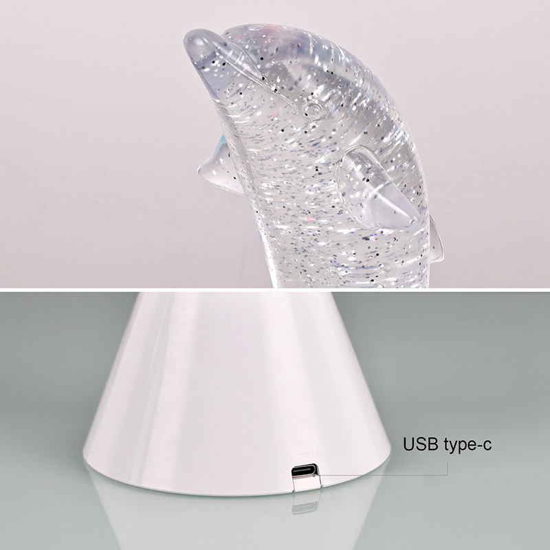 Dolphin Kid RGB Nigh Light-ek bateria-diseinu integratua dauka, kable-konexio konplikatuen beharra ezabatuz eta argiztapen leuna eskaintzen dizu edonoiz eta edonon. Logelan, ikasgelan edo haurren gelan jarrita, erraz mugitu daiteke zure eszena behar ezberdinei erantzuteko.