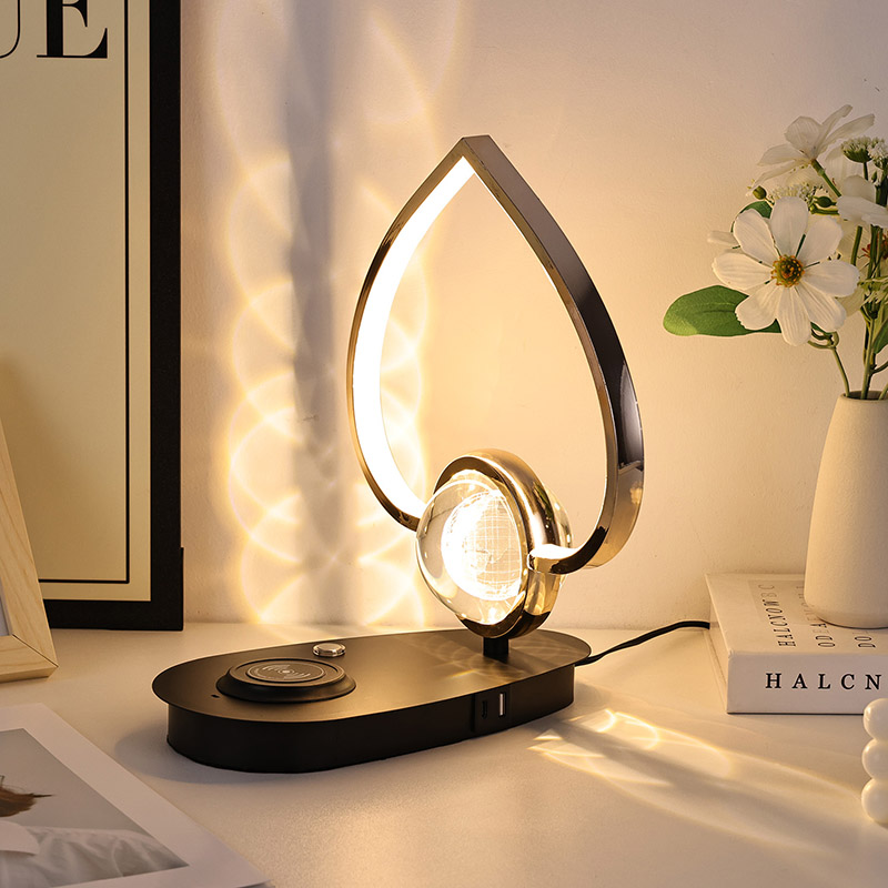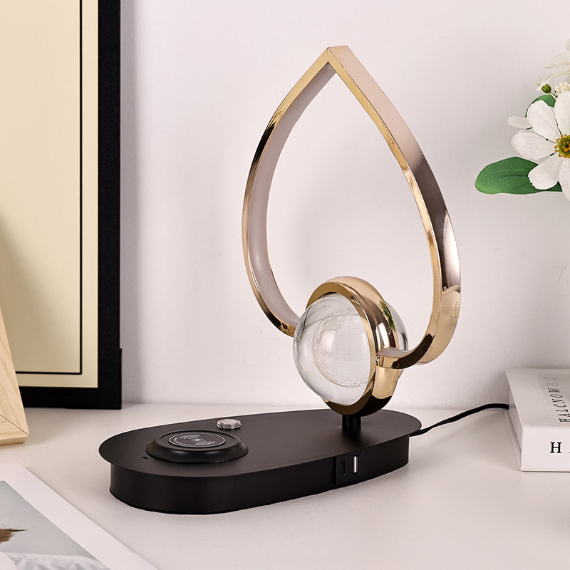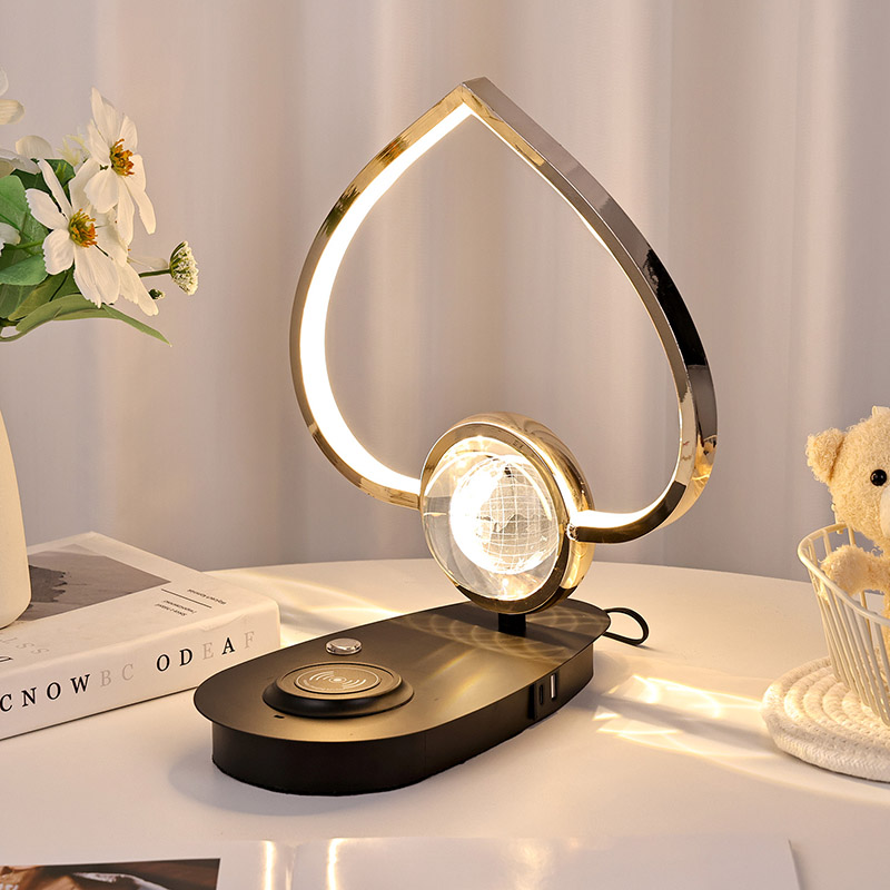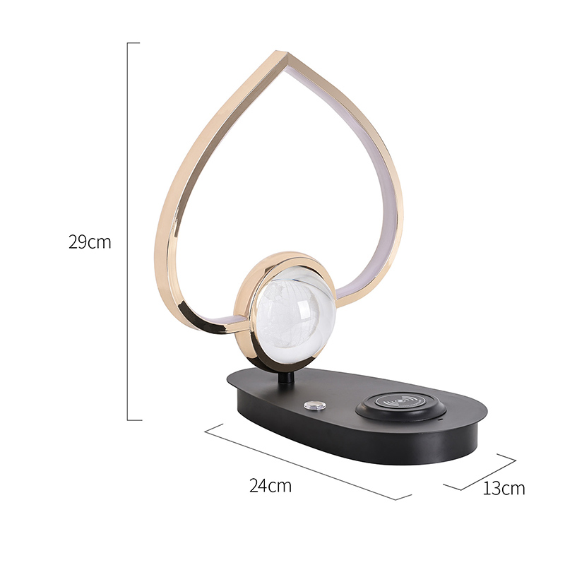 Earth haririk gabeko kargagailua LED mahaigaineko lanparak Bihotz itzalarekin telefonoaren haririk gabeko kargagailua eta usb ataka kargagailua ditu