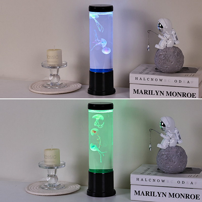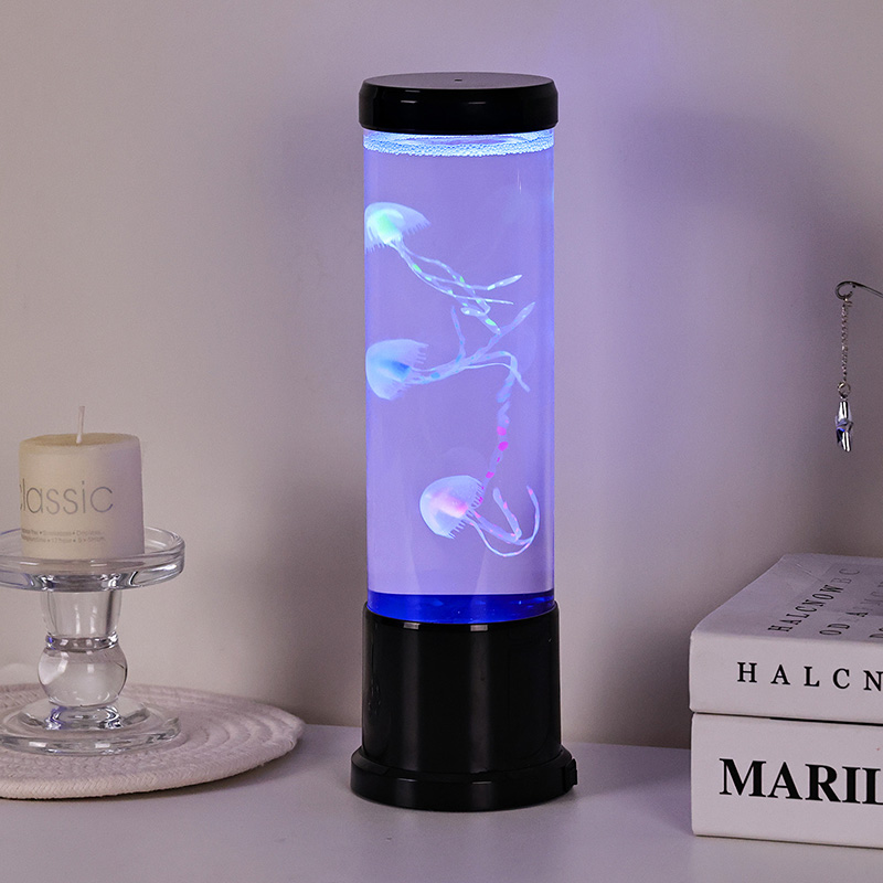 40*30*30,5CMTamaina handiko led medusen lanpara - Zure espaziorako gehigarri liluragarria Sartu edertasun lasaiko mundu batera gure Jellyfish LED lanpara zoragarriarekin, naturaren dotoreziaren eta teknologia modernoaren nahasketa liluragarriarekin. Estetika lasaigarria eta diseinu berritzailea estimatzen dutenentzat diseinatua, mahai gaineko lanpara paregabe honek medusen mugimendu liluragarria dakar zure etxera, bulegora edo logelara, akuariorik beharrik gabe. Bere karkasa beltz dotorearekin, gorputz zilindriko gardenarekin eta barneko medusa irudi liluragarriekin, USB bidez elikatzen den, tentsio baxuko argi honek giro lasaigarria sortzen du erlaxatzeko, meditaziorako edo giroko argiztapenerako ezin hobea.