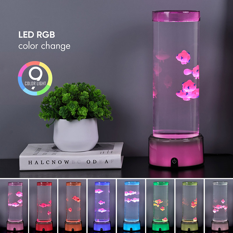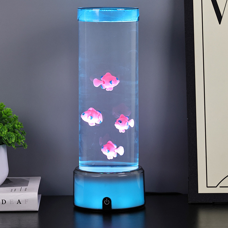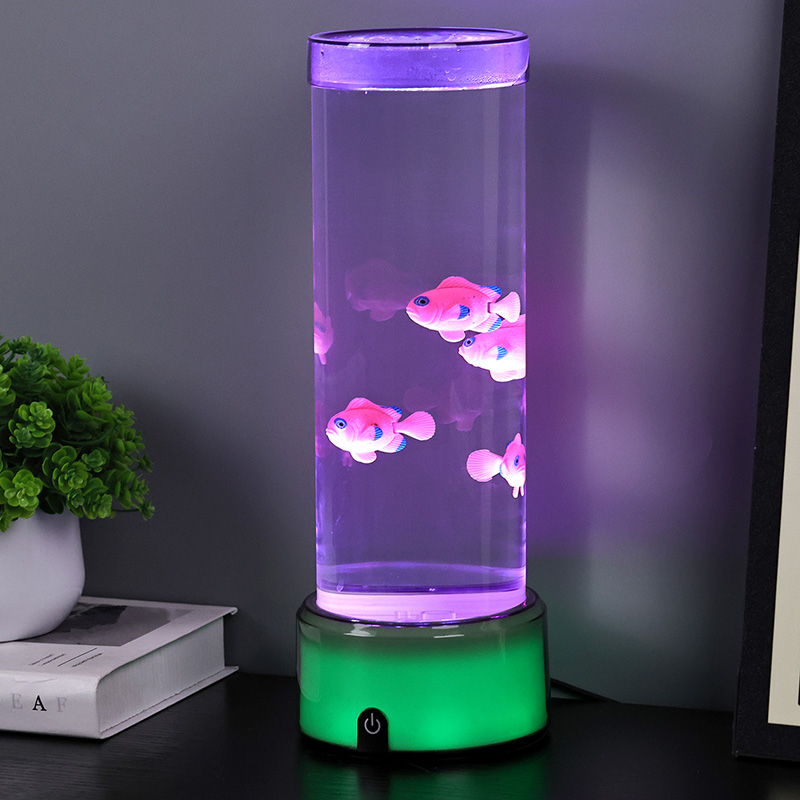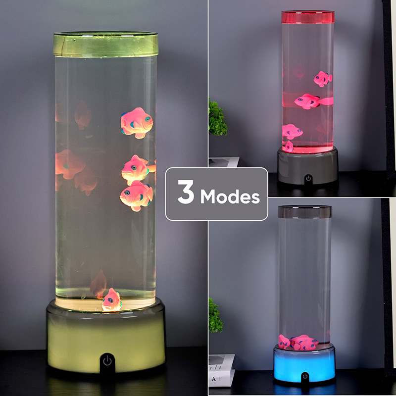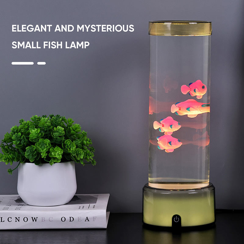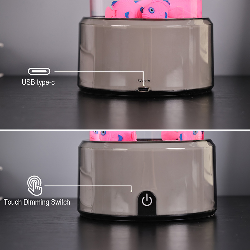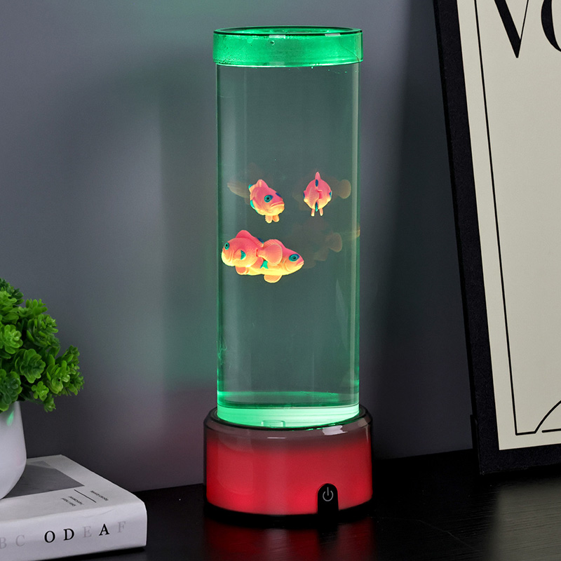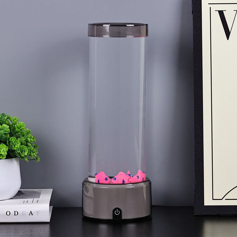 Ukitu hautaketa etengailua eta Medusak igeriMedusa Arrainen Lanpara RGB Base Dekorazio Lanpararekin, diseinatu berri den haurrentzako ikusteko jostailua, ura eusteko diseinu zilindrikoa duena. Urez bete ondoren, hiru arrain txiki sartzen dira barruan. RGB Oinarriarekin Medusa Arrainen Lanparak gora eta behera egin dezake igerian beheko motor txikia biratzen denean. Aldi berean, oinarriak RGB kolore eraldaketa du. Produktu honen aipagarriena kolore eraldaketarekin oinarria ere aldatzen dela da. Plastikozko diseinu osoa oso arina da ura eduki gabe, eta hori oso erosoa da garraiatzeko. Arrain lanpararen elikadura iturria USB C motako tentsio baxuak ematen du, eta hori oso erosoa da