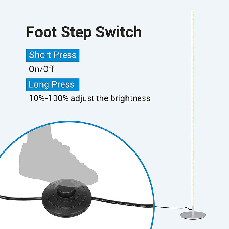 Erosotasuna kontuan hartuta diseinatuta, gure LED zoruko lanparak oin etengailua du funtzionamendu erraza izateko. Besterik gabe, zapaldu etengailua lanpara pizteko edo itzaltzeko, eta argiztapena kontrolatzea errazagoa da botoi edo etengailuen bila ibili beharrik gabe. Diseinu zehatz honek erabiltzailearen esperientzia orokorra hobetzen du, lanpararen funtzionamendua ahalik eta errazena eta intuitiboena dela bermatuz.