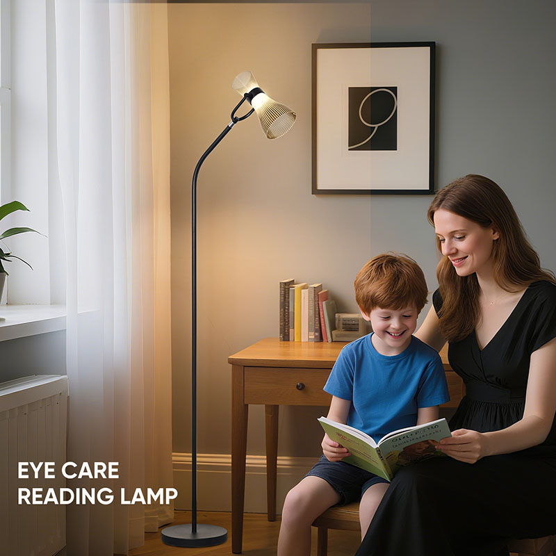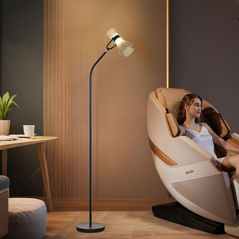 Beirazko pantaila duen led solairuko lanpara modernoa argi leuna eta distiratsua igortzen duten LED argi iturri aurreratuez hornituta dago, begiak modu eraginkorrean babestuz eta begien erabilera luzeak eragindako nekea eta ondoeza murrizteko.