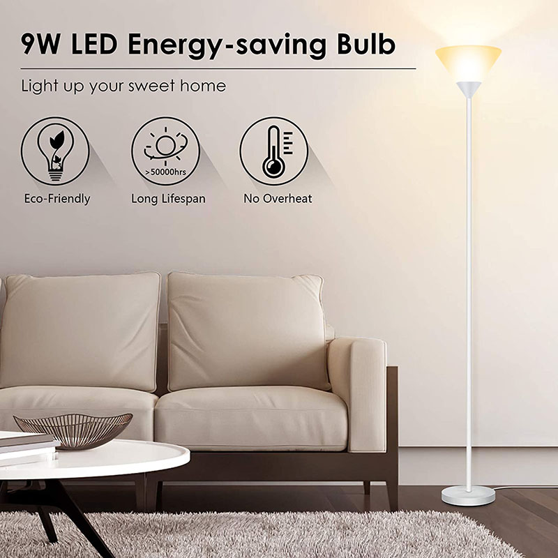 Kalitate handiko materialekin egina, LED polifazetiko zoru-lanparak metalezko marko sendoa eta plastikozko pantaila iraunkorra ditu. Bere diseinu minimalistak barruko edozein dekoraziotan ezin hobeto egokitzen dela ziurtatzen du, modernoa, tradizionala edo eklektikoa dela. Lanpararen haga bakarreko egiturak egonkortasuna eta estetika garbia eskaintzen ditu, eta itzal konikoak argia gorantz zuzentzen du, giro atsegina sortuz.