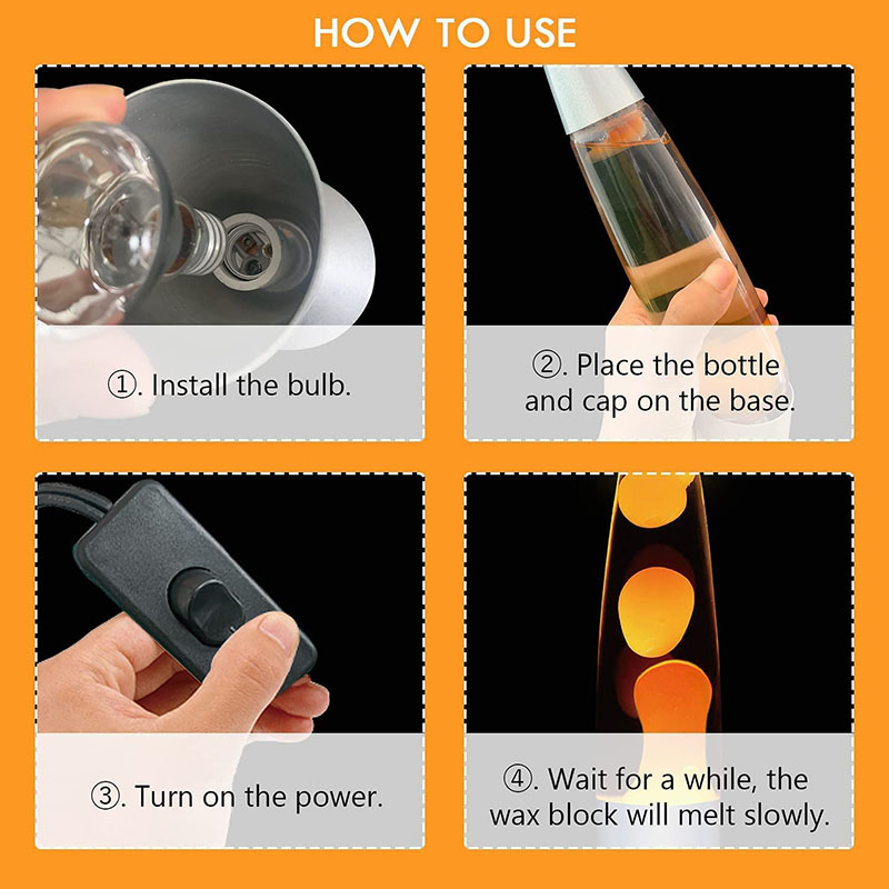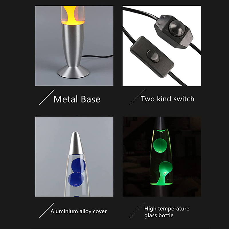 Zilarrezko oinarria eta botila garbia, kolore ezberdineko argizaria eta likidoa |