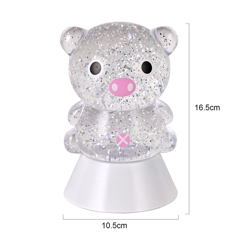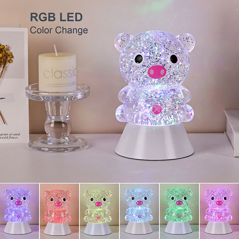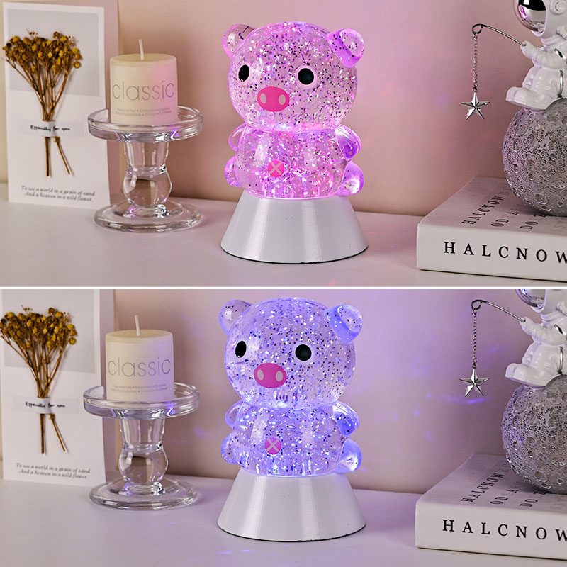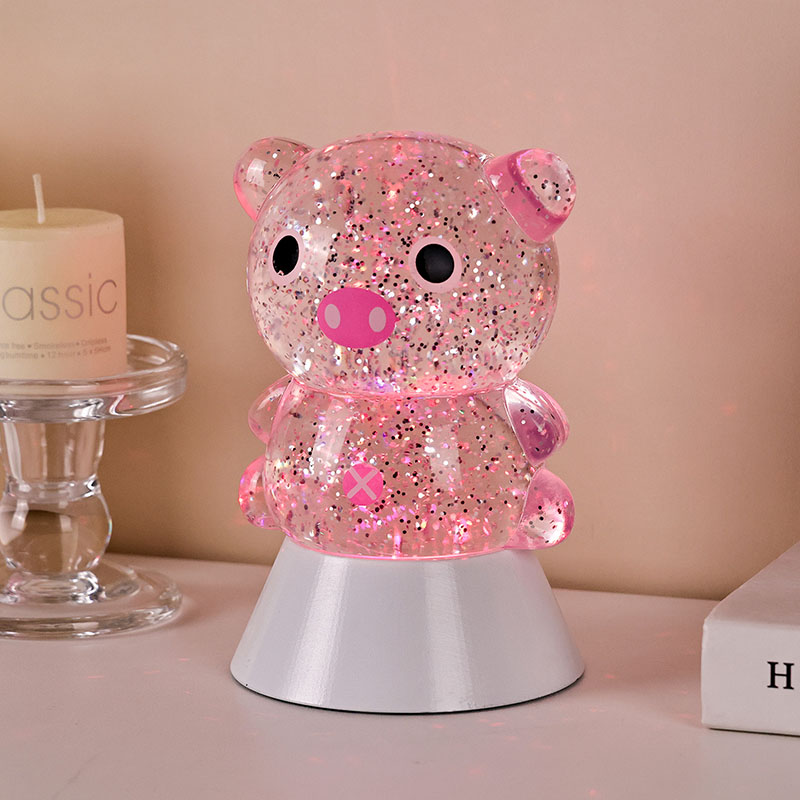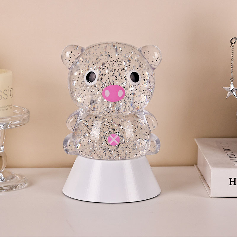 Plastikoa eta ElektronikoaGau atsegin batean, gau-argi xelebre eta magiko batek berotasun eta irudimen amaigabeak ekar ditzake haur baten gelara. "Dreamy Pig" itxurako gau-argi apaingarri honek, marrazki bizidunetako txerri diseinu adoragarrian inspiratuta, likidoa aldatzeko teknologia dinamikoa efektu distiratsuekin konbinatzen du, dibertsioa, estetika eta praktikotasuna nahasten dituen etxeko argiztapen-produktu sortzailea sortzeko. Aukera ezin hobea da haurren logelak, logelak, mahaiak edo oporretako opari gisa.