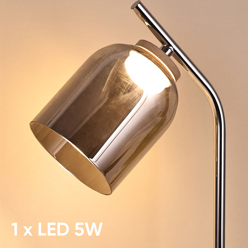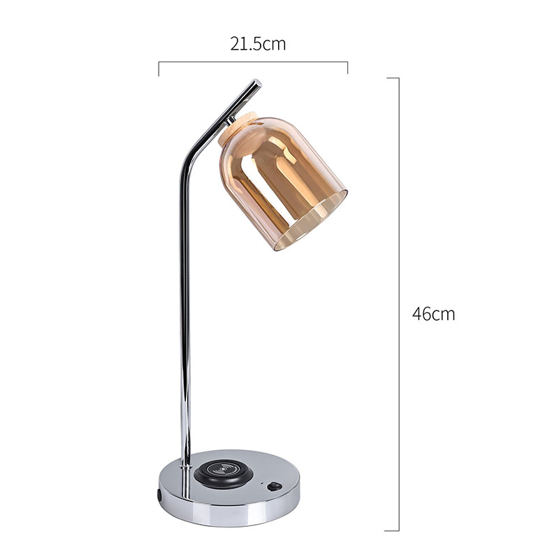 Oinarri kromatua, kristalezko pantaila ke (anbarra).Diseinu berritzailea, beirazko materiala, goi-mailako itxura dotorea, mahai-lanpara oso apaingarriaren diseinu-estiloa