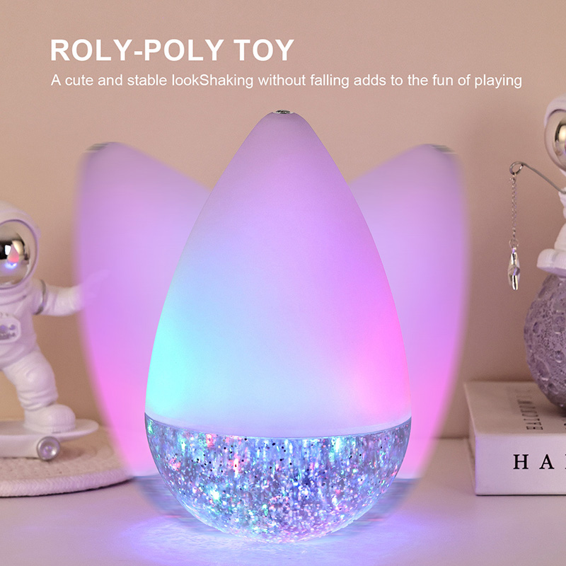Ezaugarria da nola dardar egiten duen, RGB distira koloretsua Roly-poly jostailuzko gau-argia zutik egongo dela.