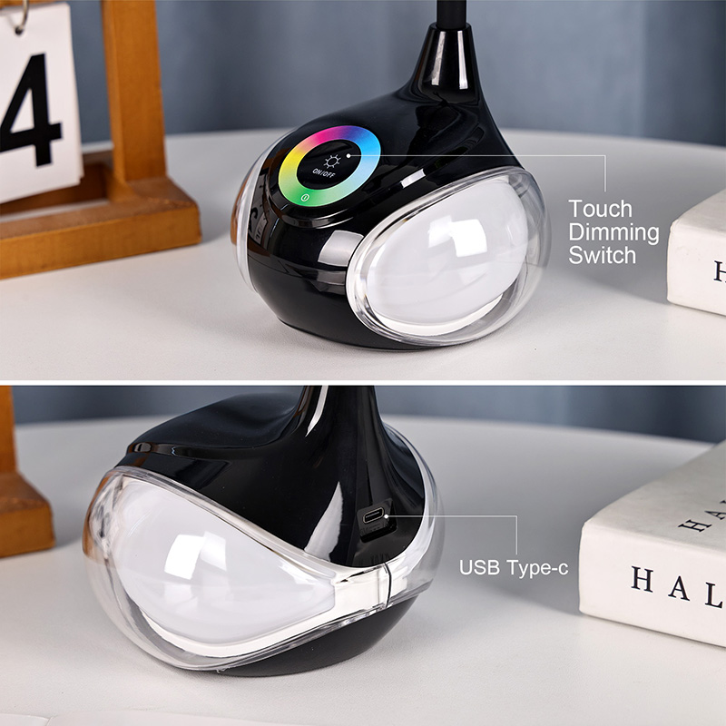 Argiztapen-funtzioaz gain, mahaiko lanpararen ezaugarririk handiena behealdean RGB-n kolorea alda dezaketen bi begi handi dituela da, libelula baten antzera, dekoraziorako eta aisialdirako oso egokia da.