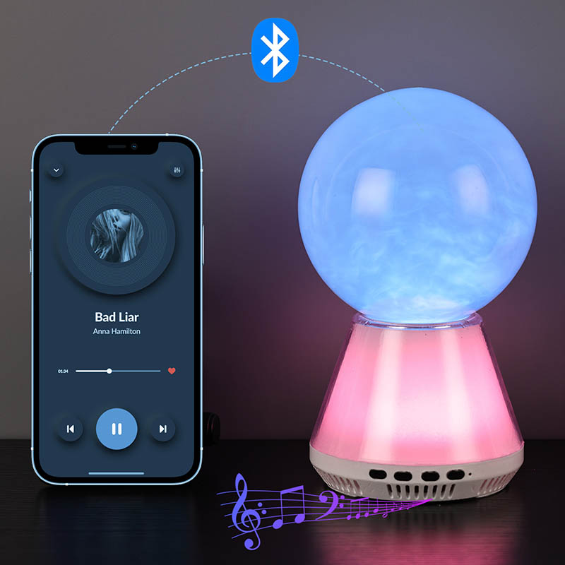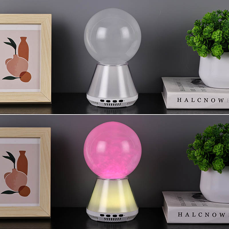 RGB LED distiratsuko lanpara bluetooth kontrolarekin, kristalezko bola bateko likidoaren fluxua hodei moduko egoera batean konbinatzen duena, oinarriaren eta likidoaren arteko kolore aldaketa sinkronizatuak eta Bluetooth konexioa musika erreproduzitzeko, zuretzako mundu ameslari bat sortzeko diseinatuta dago. RGB LED distiratsua bluetooth kontrola duen lanpara gaueko argi praktikoa ez ezik, artelan magiko bat ere bada.