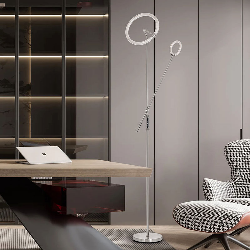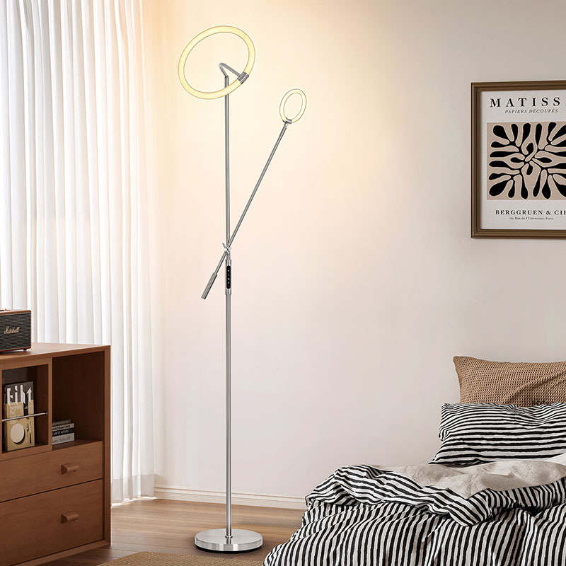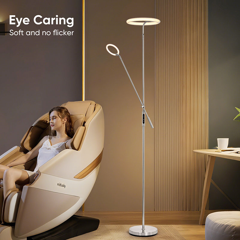 Ingurumeneko argiztapenaren diseinuak lanparak ikusmen-efektu paregabea izateaz gain, argia modu eraginkorrean zabaltzen du, argia leunagoa eta uniformeagoa bihurtuz. Zoru-lanpara honen farola eta oinarria fin-fin leundu eta tratatu dira, gainazal leun eta delikatuarekin eta eskuko sentsazio erosoarekin,