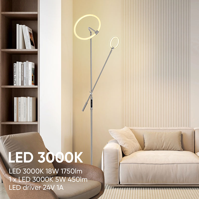 Eszenatoki desberdinetan zure argiztapen-beharrak asetzeko, zutabe honen farola eta oinarria argi-intentsitatea doitzeko funtzioko 3 maila ditu. Eragiketa errazen bidez, argiaren intentsitatea askatasunez doi dezakezu behar eta eszena ezberdinen arabera. Liburuak irakurtzeko argi distiratsua behar duzun edo giro erromantiko bat sortzeko argiztapen leuna nahi baduzu, zoruko lanpara honen farola eta oinarriak zure eskakizunak erraz bete ditzakete.