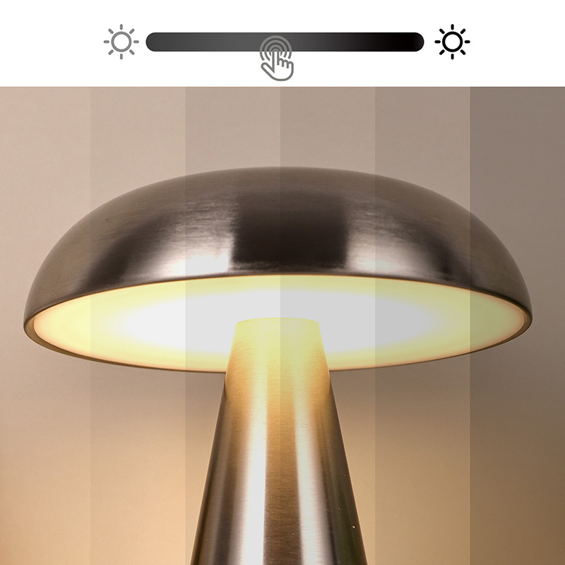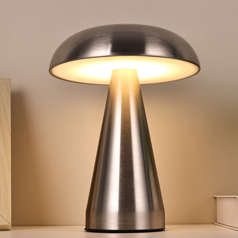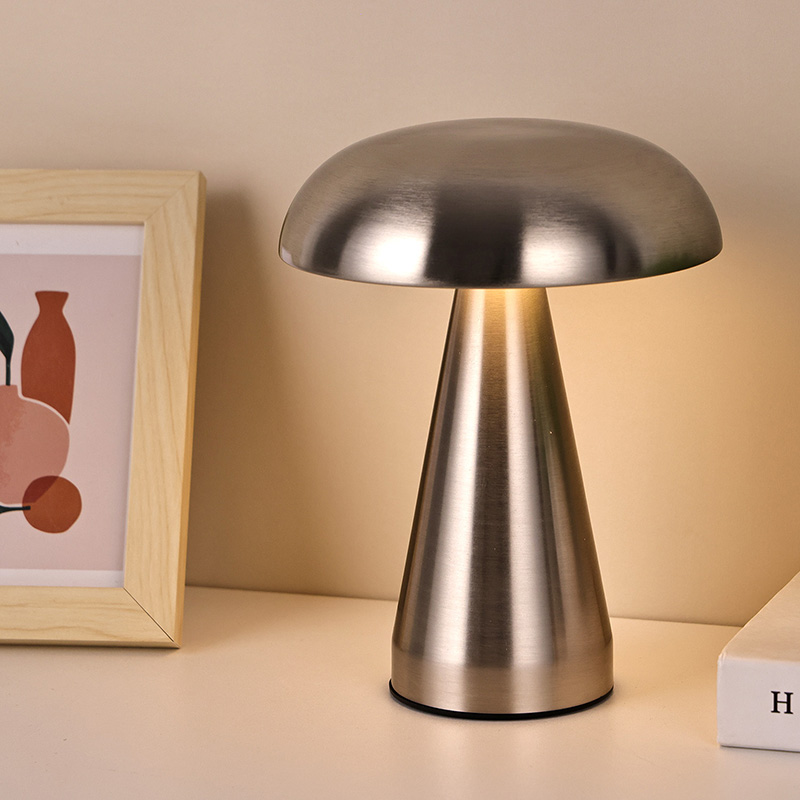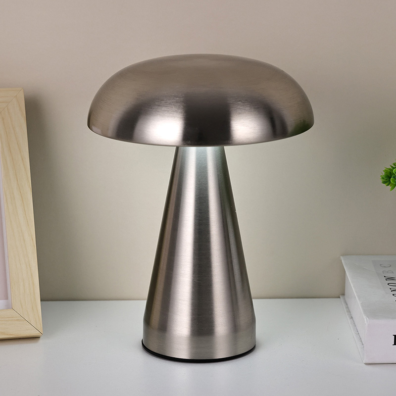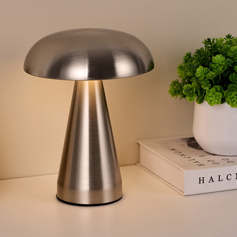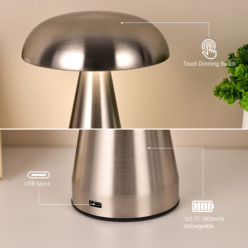 Ukitu iluntzeko etengailuaPerretxiko itzalarekin metalezko buruko lanpara osoa metalezko material osoz egina dago eta diseinu itxura oso berezia du. Perretxiko baten forma imitatzen du eta perretxikoaren barnean moztutako indar-argi erregulagarriak ditu. Perretxiko itzalarekin metalezko LED osoko mahaiko lanpara egokia da haurrentzako geletan jartzeko, ingurune bezalako elkarrizketa batean. Perretxiko itzalarekin metalezko LED osoko lanpara haurren mundua ondo osatzen du eta argiztapen epela ematen dio gelari. Mugikortasun erraza izateko, mahaiko lanparak bateria kargagarri bat dauka barnean, edonoiz eta edonon erabil daiteke.