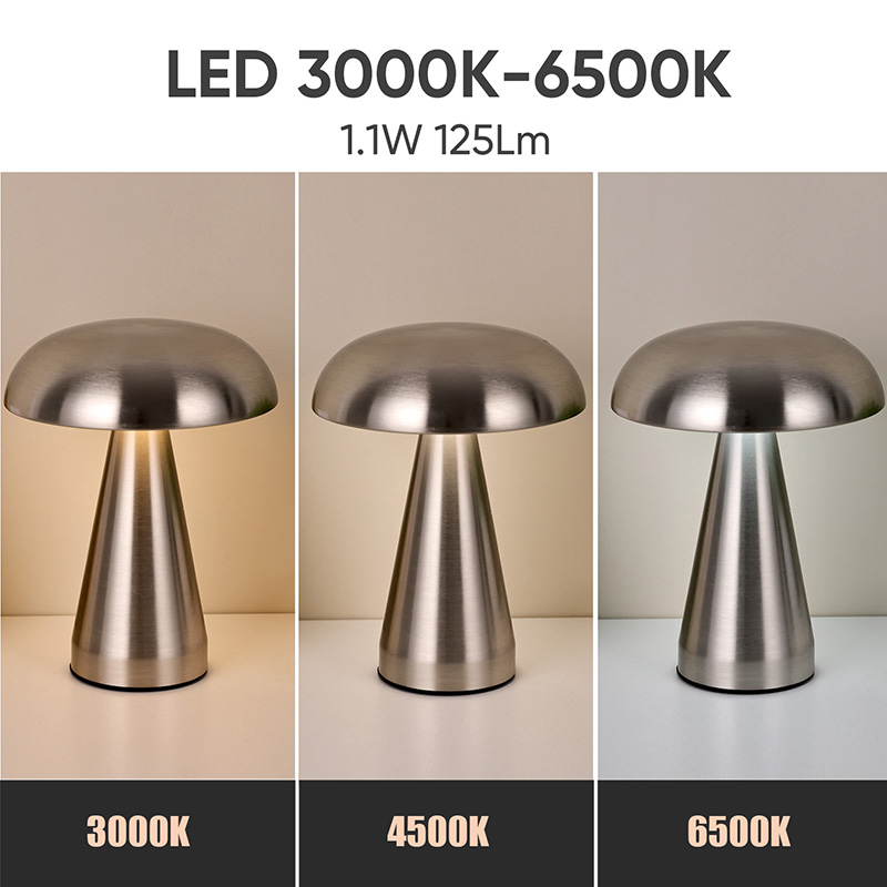Metal osoak Led mahaiko lanpara perretxiko itzalarekin 3000K (argi epela) 4500K (argi naturala) 6500K (argi zuria) 3 argi kolore aldaketa ditu