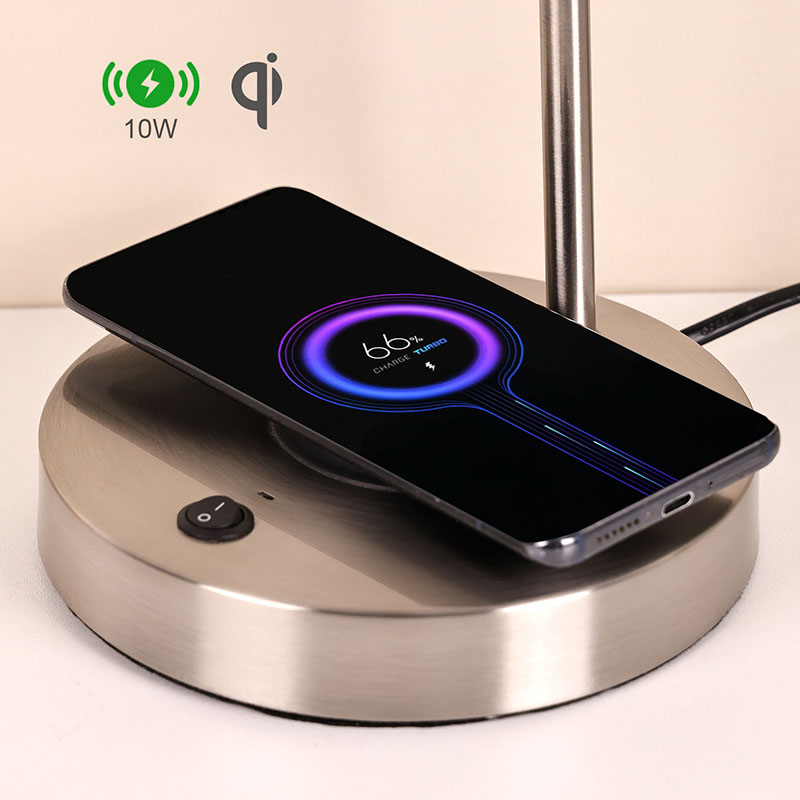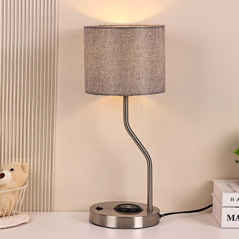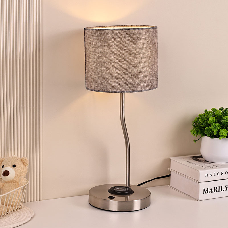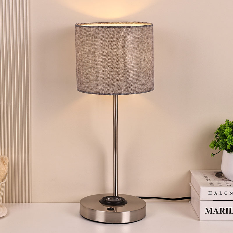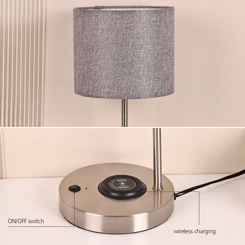 Haririk gabeko telefonoen kargagailuaren mahaiko lanpara oihalezko itzalarekin ere telefono mugikorrentzako haririk gabeko kargatzeko funtzio aurreratuarekin hornituta dago. Jarri haririk gabeko kargatzeko gaituta duen telefonoa leunki oinarrian kargatzeko, konektatzeko eragiketa neketsurik egin gabe. Haririk gabeko kargatzeko teknologiak erabiltzeko erosotasuna hobetzeaz gain, hari nahasien arazoa saihesten du, mahaigaina txukun eta ederrago bihurtuz.