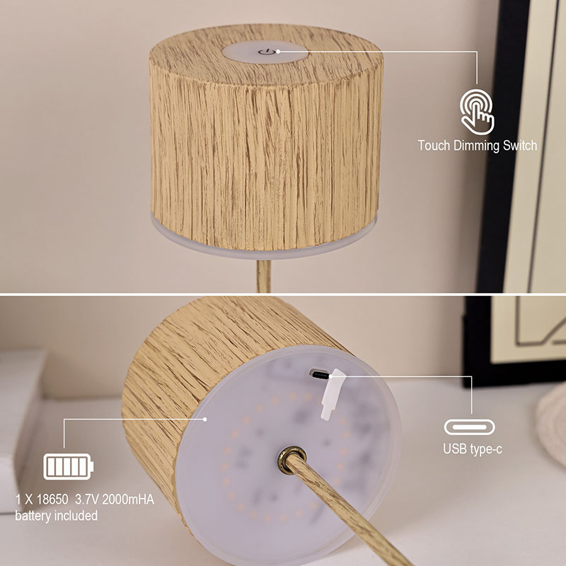 Zure erosotasunerako, Egurrezko led mahaiko lanpara bateriarekin ere bateria kargagarri batekin hornituta dago. Kargatzeko entxufe batera konektatu besterik ez duzu behar, eta argiztapen nahikoa gozatu ahal izango duzu edonoiz eta edonon. Larrialdietako argiztapena argindar etenaldietan edo kanpoko jardueretarako argi-iturri eramangarriak izan, Egurrezko led mahaiko lanparak bateriarekin babes fidagarria eman diezazuke. Horrez gain, integratutako bateriaren diseinuak mahaiko lanpara arinagoa eta eramangarriagoa egiten du, erraz mugitu eta kokatzea.